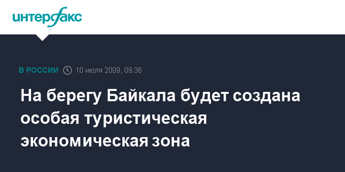 Москва. 9 июля. INTERFAX.RU – Первый камень в строительство особой экономической зоны туристско-рекреакционного типа "Байкальская гавань" был заложен на берегу озера Байкал у поселка Турка.