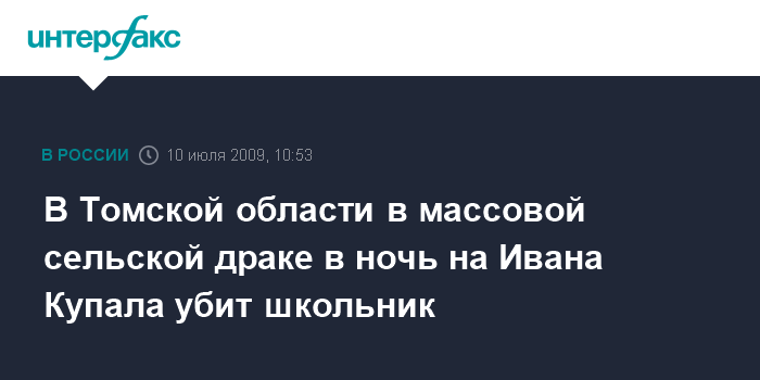 В Томской области в массовой сельской драке в ночь на Ивана Купала убит школьник