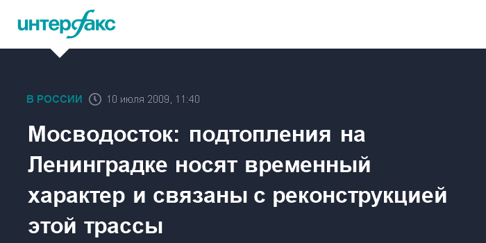 Москва. 10 июля. INTERFAX.RU – Локальные подтопления, образовавшиеся в результате сильных дождей в пятницу утром на Ленинградском проспекте и Ленинградском шоссе, связаны с масштабными работами по реконструкции этой магистрали, сообщил "Интерфаксу" пресс-секретарь ГУП "Мосводосток" Игорь Епифанов.