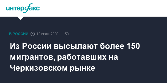 Москва. 10 июля. INTERFAX.RU – Сто пятьдесят один гражданин Китая и Вьетнама, ранее работавших на Черкизовском рынке в Москва, должны покинуть территорию РФ в 10-дневный срок, сообщил официальный представитель ФМС России Константин Полторанин.