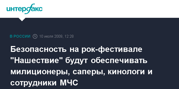 Безопасность на рок-фестивале "Нашествие" будут обеспечивать милиционеры, саперы, кинологи и сотрудники МЧС
