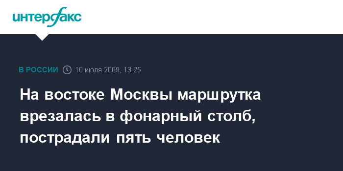 На востоке Москвы маршрутка врезалась в фонарный столб, пострадали пять человек