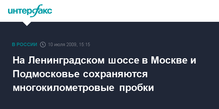 Москва. 10 июля. INTERFAX.RU - Серьезные пробки и заторы отмечаются на Ленинградском шоссе - как на территории Москвы, так и в Московской области в обоих направлениях, передает корреспондент "Интерфакса".