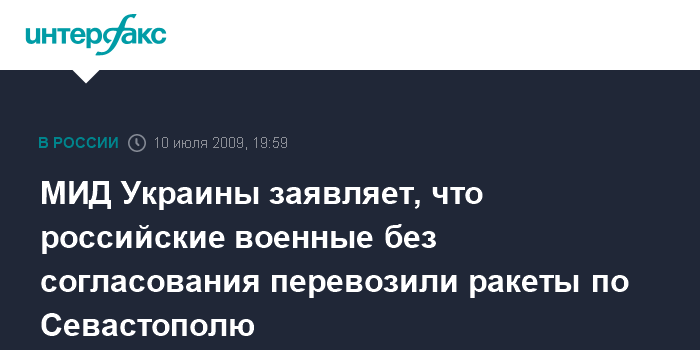 Москва. 10 июля. INTERFAX.RU - В МИД Украины подтвердили информацию СМИ о задержании в Севастополе автомобилей Черноморского флота Российской Федерации, перевозивших крылатые ракеты.