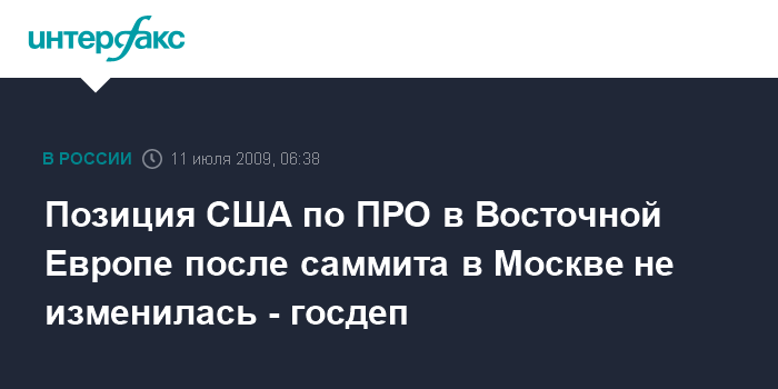 Позиция США по ПРО в Восточной Европе после саммита в Москве не изменилась - госдеп