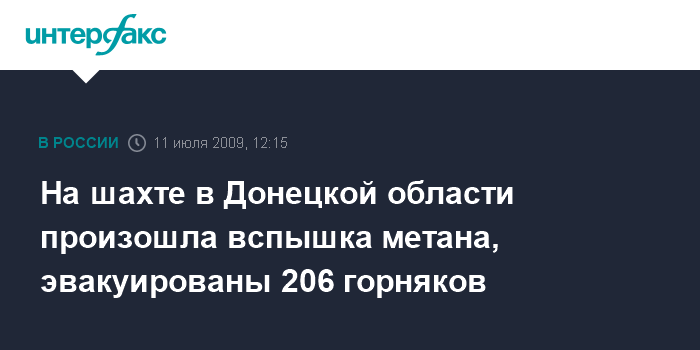 Москва. 11 июля. INTERFAX.RU - На шахте им.Стаханова в городе Дмитров Донецкой области в ночь на субботу произошла вспышка метана с последующим горением, сообщил начальник пресс-службы МинЧС Украины Игорь Кроль.