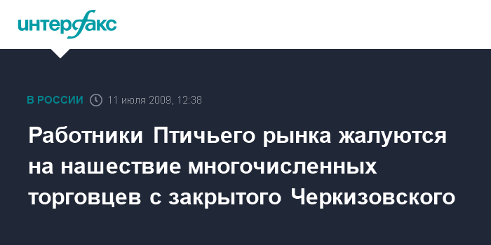 Москва. 11 июля. INTERFAX.RU - Непростая ситуация возникла в связи с событиями на Черкизовском рынке Москвы на рынке на другом конце города - так называемом Птичьем рынке (центр оптово-розничной торговли "Садовод").