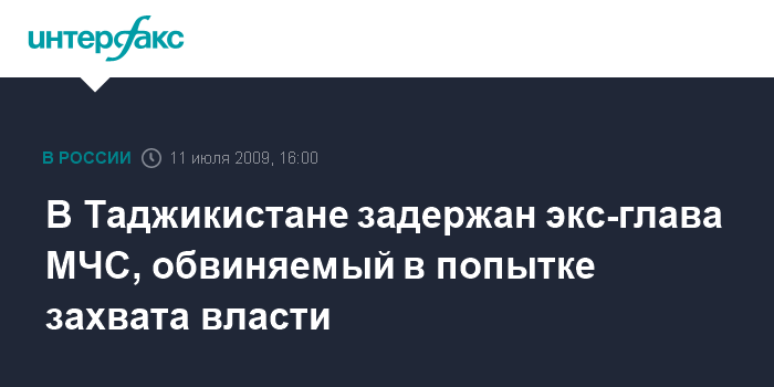 Москва. 11 июля. INTERFAX.RU - На юго-востоке Таджикистана прошла операция по задержанию антиправительственной группировки, к которой примкнул бывший глава МЧС генерал-майор Мирзо Зиёев, сообщил "Интерфаксу" в субботу высокопоставленный источник в силовых органах республики.