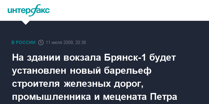 На здании вокзала Брянск-1 будет установлен новый барельеф строителя железных дорог, промышленника и мецената Петра Губонина