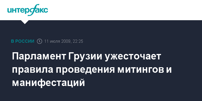 Тбилиси. 11 июля. ИНТЕРФАКС - Парламент Грузии на внеочередном заседании в субботу принял в первом чтении инициированный правящей партией законодательный пакет, в соответствии с которым ужесточаются правила проведения протестных акций.