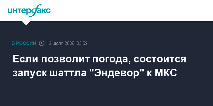 Москва. 12 июля. ИНТЕРФАКС-АВН - Метеорологи НАСА не исключают возможности, что намеченный на воскресенье запуск шаттла "Эндевор" может вновь не состояться.
