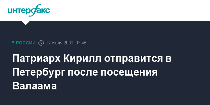 Патриарх Кирилл отправится в Петербург после посещения Валаама