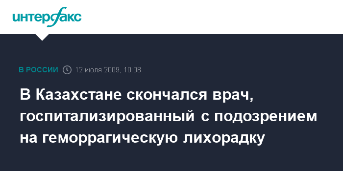 Астана/Чимкент. 12 июля. INTERFAX.RU - В Южно-Казахстанской области (ЮКО) скончался мужчина, госпитализированный ранее с подозрением на конго-крымскую геморрагическую лихорадку.