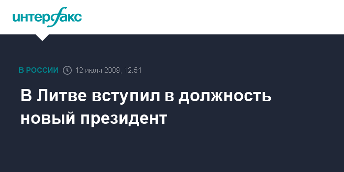 Вильнюс. 12 июля. ИНТЕРФАКС/BNS - Новый президент Литвы Даля Грибаускайте (Dalia Grybauskaite) в воскресенье была приведена к присяге в литовском парламенте и получила полномочия.