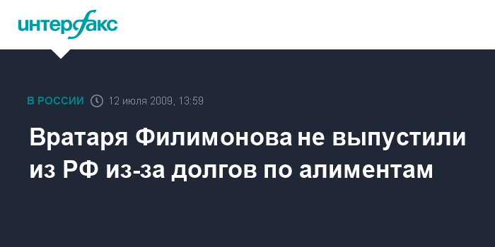 Москва. 12 июля. INTERFAX.RU - Судебные приставы в воскресенье не выпустили из РФ в Узбекистан бывшего вратаря сборной России по футболу и московского "Спартака" Александра Филимонова, сообщает Первый канал.