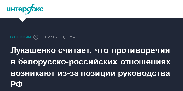 Минск. 12 июля. INTERFAX.RU - Противоречия в белорусско-российских отношениях вызваны позицией российского руководства, заявил президент Белоруссии Александр Лукашенко в интервью австрийской газете Die Presse.