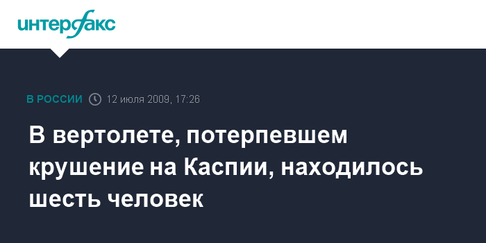 Баку. 12 июля. INTERFAX.RU - Спасены все трое членов экипажа, а также один из трех азербайджанских нефтяников, находившихся в транспортном вертолете Ми-8, который в воскресенье потерпел крушение над Каспием недалеко от Баку.