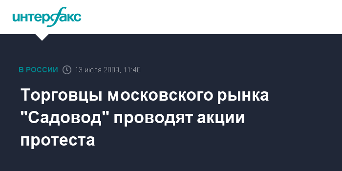 Москва. 13 июля. INTERFAX.RU - Как передает корреспондент "Интерфакса", в понедельник порядка 300 человек из числа работников и торговцев столичного рынка "Садовод", известного как "Птичий рынок", проводят акции протеста, которая началась в 11:00. Участники митинга выступают против передачи их торговых точек в аренду торговцам из Китая, оставшимся без работы в связи с закрытием Черкизовского рынка.