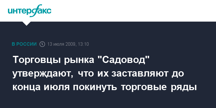 Москва. 13 июля. INTERFAX.RU - Арендаторы столичного рынка "Садовод" заявляют, что им предписано покинуть торговые точки до 31 июля.
