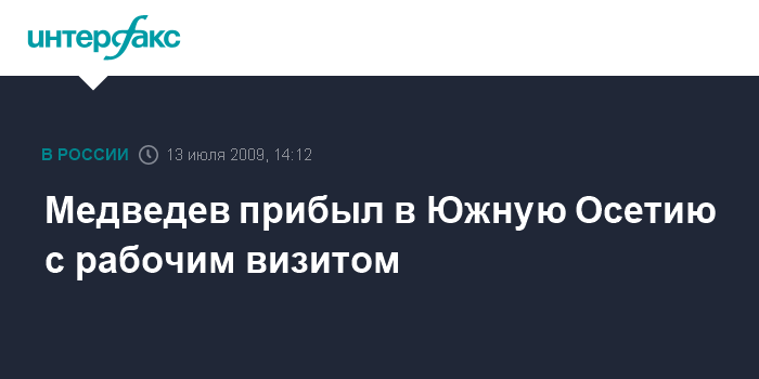 Цхинвали. 13 июля. INTERFAX.RU - Президент РФ Дмитрий Медведев совершает в понедельник рабочий визит в Южную Осетию.