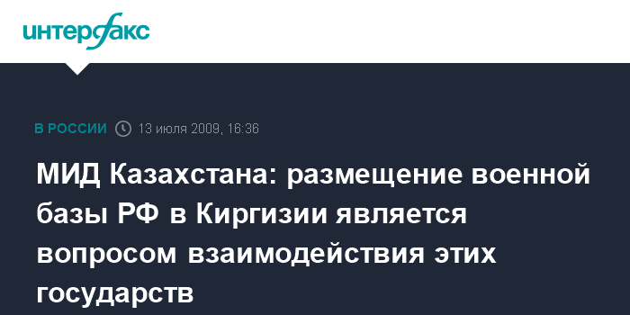 МИД Казахстана: размещение военной базы РФ в Киргизии является вопросом взаимодействия этих государств