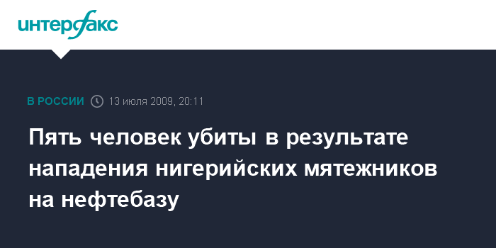 Лондон. 13 июля. INTERFAX.RU - По меньшей мере пять человек стали жертвами нападения на нефтебазу мятежников из группировки Нигерии "Движение за освобождение дельты Нигера", сообщила BBC на местные власти.