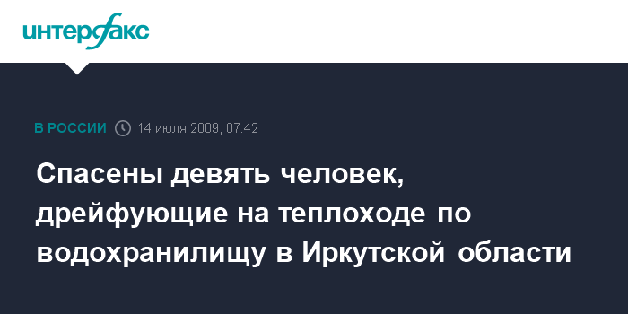 Иркутск. 14 июля. ИНТЕРФАКС-СИБИРЬ - В Иркутской области спасены девять человек, дрейфующие по Братскому водохранилищу на теплоходе.