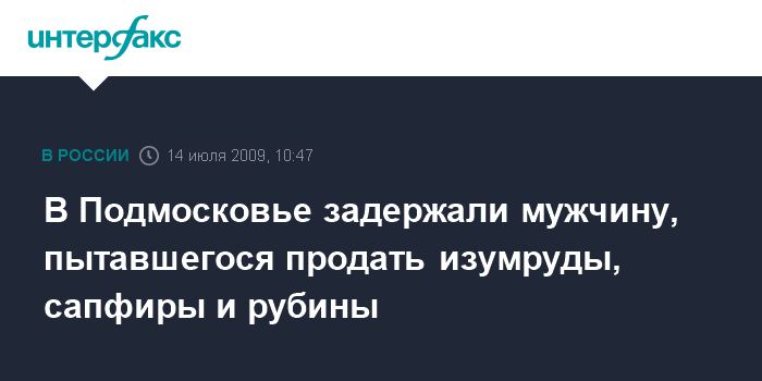 Москва. 14 июля. INTERFAX.RU - Сотрудники Главного управления МВД России по Центральному федеральному округу задержали в подмосковном Подольске мужчину, который пытался незаконно продать изумруды, сапфиры и рубины, сообщили "Интерфаксу" в пресс-службе ГУ МВД России по ЦФО во вторник. При задержании у задержанного было обнаружено 48 камней общим весом 40 карат, которые он пытался сбыть за один миллион рублей.