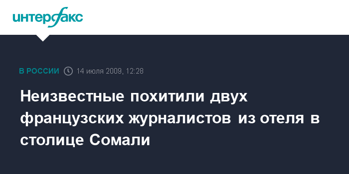 Неизвестные похитили двух французских журналистов из отеля в столице Сомали
