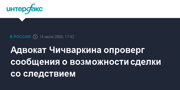 Москва. 14 июля. INTERFAX.RU - Адвокат бывшего главы "Евросети" Евгения Чичваркина, обвиняемого в похищении человека, отверг возможность заключения его подзащитным сделки со следствием.