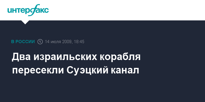 Иерусалим. 14 июля. INTERFAX.RU - Два корабля ВМС Израиля во вторник пересекли Суэцкий канал, направляясь из Средиземного в Красное море, сообщает газета Haaretz со ссылкой на заявление представителей израильского Минобороны.