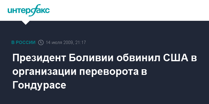 Ла-Пас. 14 июля. INTERFAX.RU - Армия США стоит за переворотом в Гондурасе, такое заявление президента Боливии Эво Моралеса Аймы приводит во вторник боливийская государственная радиосеть "Радио Патриа Нуэва".