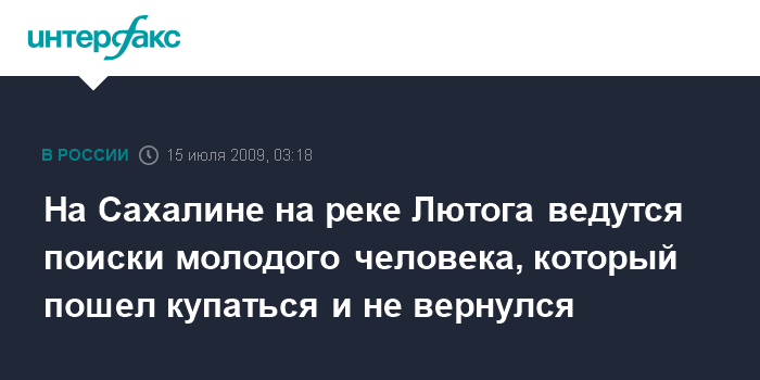 Южно-Сахалинск. 15 июля. ИНТЕРФАКС-ДАЛЬНИЙ ВОСТОК - На Сахалине на реке Лютога в Анивском районе ведутся поиски 22-летнего жителя Южно-Сахалинска.