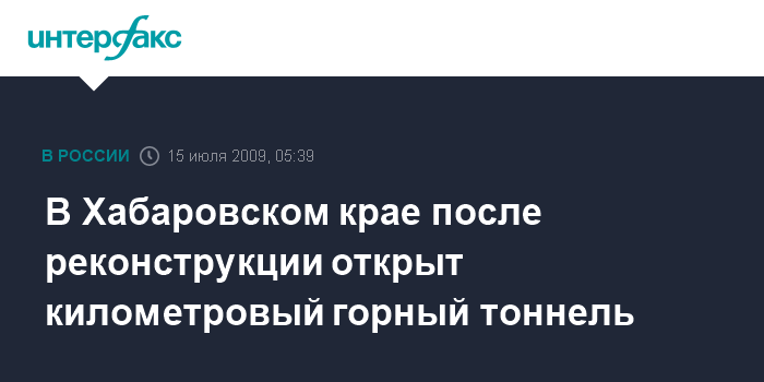 В Хабаровском крае после реконструкции открыт километровый горный тоннель