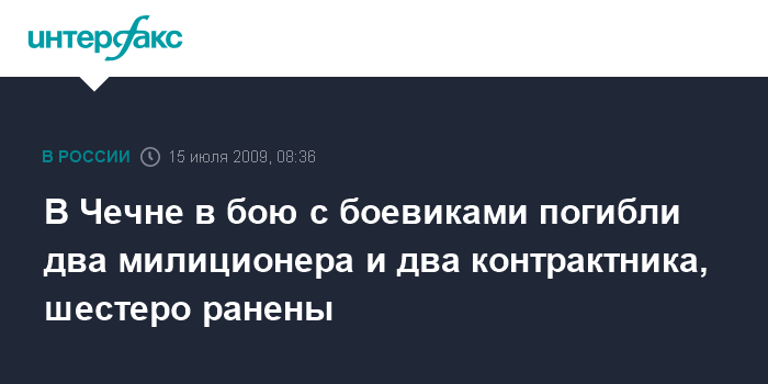 "В результате погибли милиционер роты ППСМ ОВД по Шалинскому району, милиционер полка ППСМ и двое военнослужащих по контракту. Получили ранения и госпитализированы двое милиционеров полка ППСМ, сотрудник ОМОН по Иркутской области и трое военнослужащих по контракту", - рассказал собеседник агентства.