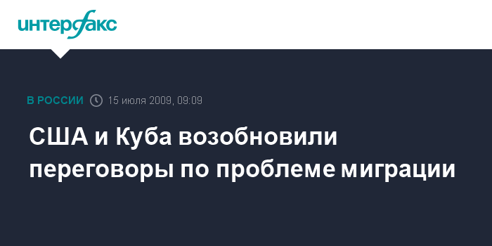 Москва. 15 июля. INTERFAX.RU - Представители США и Кубы возобновили в штаб-квартире ООН переговоры по вопросам миграции.