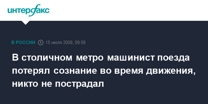 Москва. 15 июля. INTERFAX.RU - На перегоне между станциями метро "Киевская" и "Выставочная" во вторник вечером произошла остановка электропоезда в связи с тем, что машинист потерял сознание, сообщил "Интерфаксу" источник в правоохранительных органах города в среду.