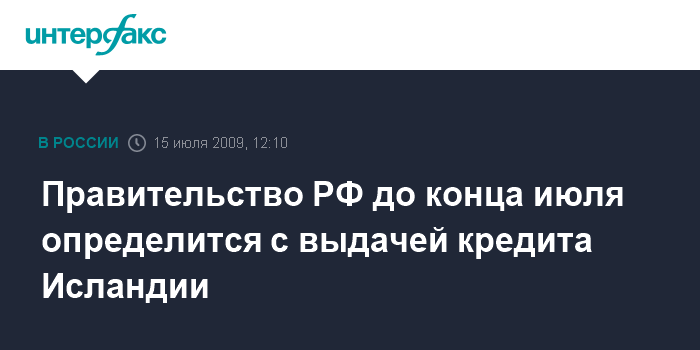 Правительство РФ до конца июля определится с выдачей кредита Исландии