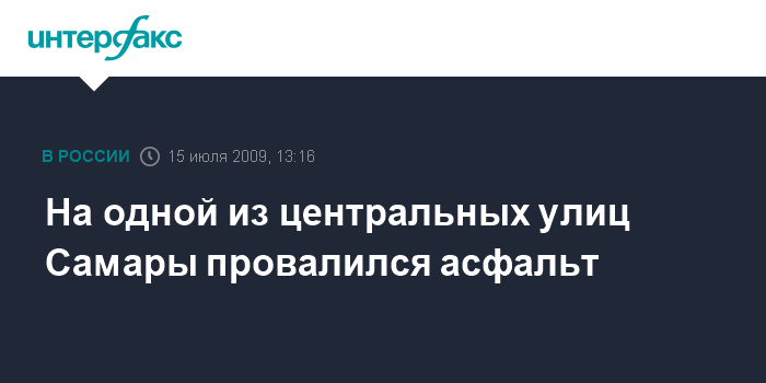 Самара. 15 июля. INTERFAX.RU - Провал асфальтового покрытия произошел на одной из центральных дорог в Самаре в результате прорыва водопровода.