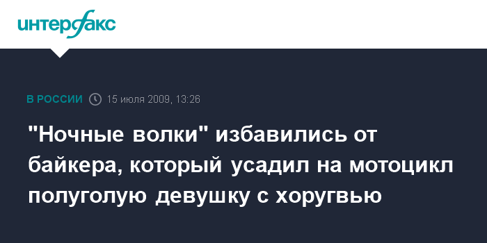 Севастополь. 15 июля. INTERFAX.RU - Байкер, который провез по Севастополю на мотоцикле с хоругвью Спаса Нерукотворного девушку с обнаженной грудью, лишился знаков принадлежности к клубу "Ночные волки".