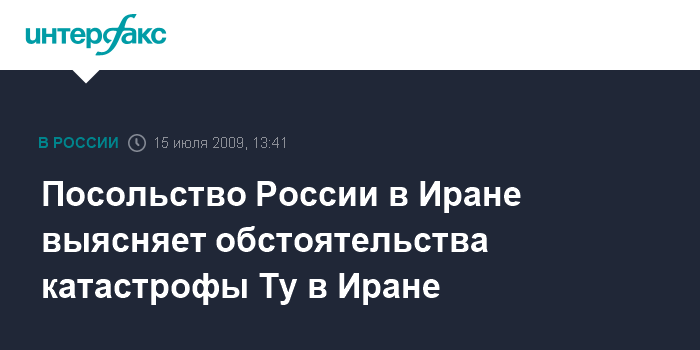 Тегеран. 15 июля. INTERFAX.RU - Российское посольство в Иране выясняет все обстоятельства, связанные с авиакатастрофой на северо-западе этой страны.