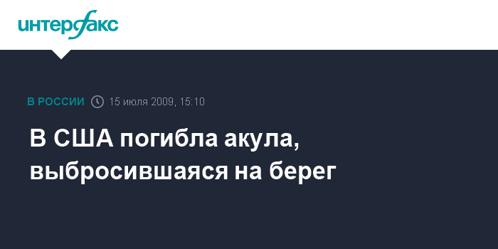 Вашингтон. 15 июля. INTERFAX.RU - На пляж острова Лонг-Айленд на юге штата Нью-Йорк выбросилась китовая акула длиной почти восемь метров, сообщила в среду американская телекомпания CNN.
