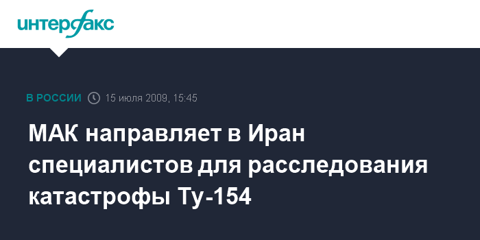 Москва. 15 июля. INTERFAX.RU - Межгосударственный авиационный комитет (МАК) сформировал группу специалистов для расследования катастрофы Ту-154, произошедшей в среду в Иране.