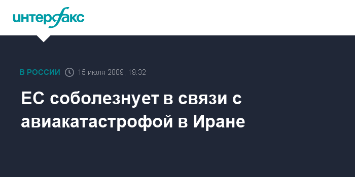 Брюссель. 15 июля. INTERFAX.RU - ЕС выразил в среду соболезнования правительству Ирана и близким 153 пассажиров и 15 членов экипажа самолета Ту-154,потерпевшего крушение в Иране.