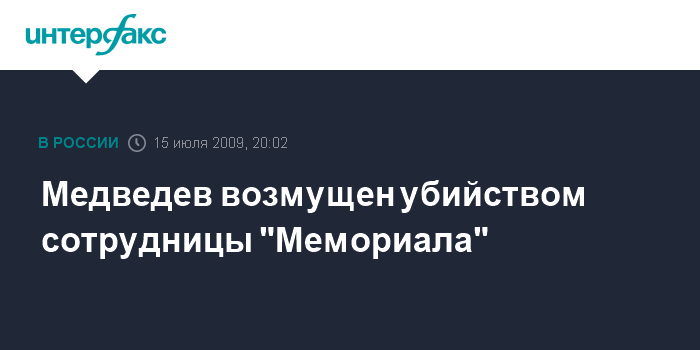 Медведев возмущен убийством сотрудницы "Мемориала"