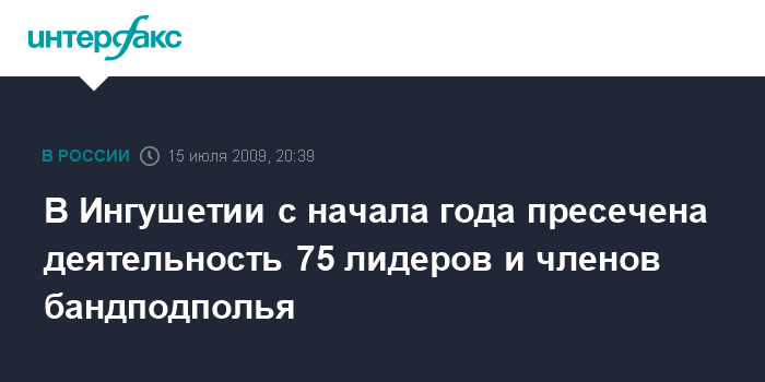 Назрань. 15 июля. ИНТЕРФАКС-ЮГ - С начала 2009 г. органами внутренних дел Ингушетии пресечена деятельность 75 активных членов бандформирований, заявил на коллегии в МВД Ингушетии заместитель министра МВД республики Андрей Колесниченко.