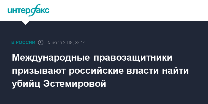 Международные правозащитники призывают российские власти найти убийц Эстемировой