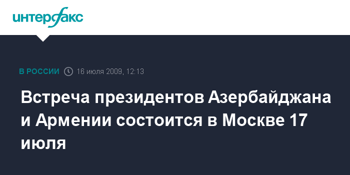 Встреча президентов Азербайджана и Армении состоится в Москве 17 июля