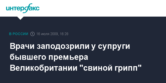 Врачи заподозрили у супруги бывшего премьера Великобритании "свиной грипп"