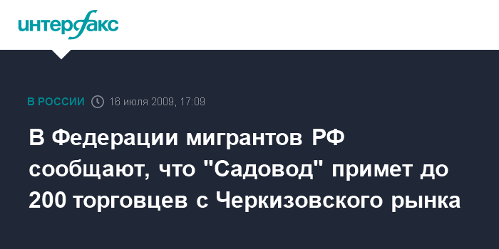 В Федерации мигрантов РФ сообщают, что "Садовод" примет до 200 торговцев с Черкизовского рынка